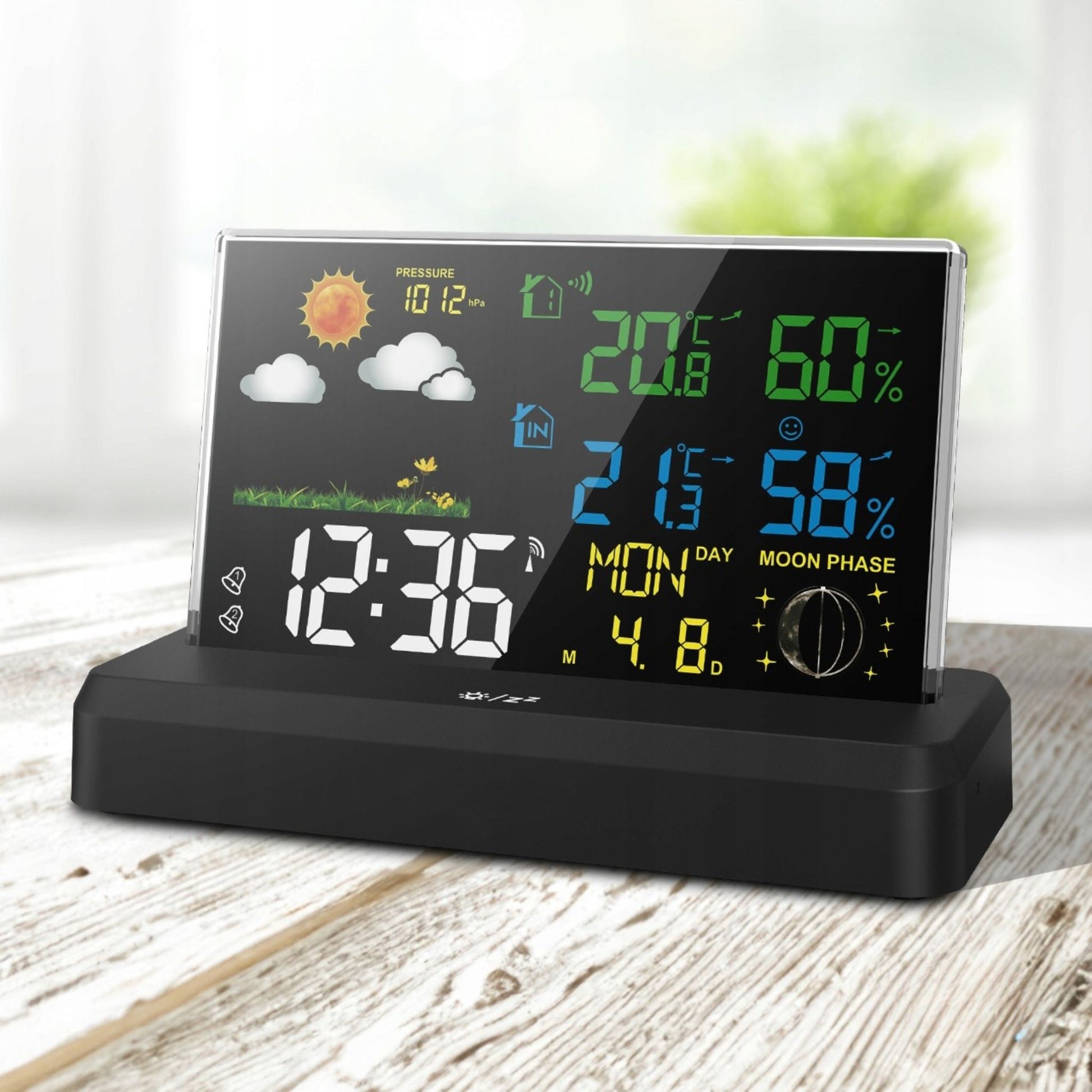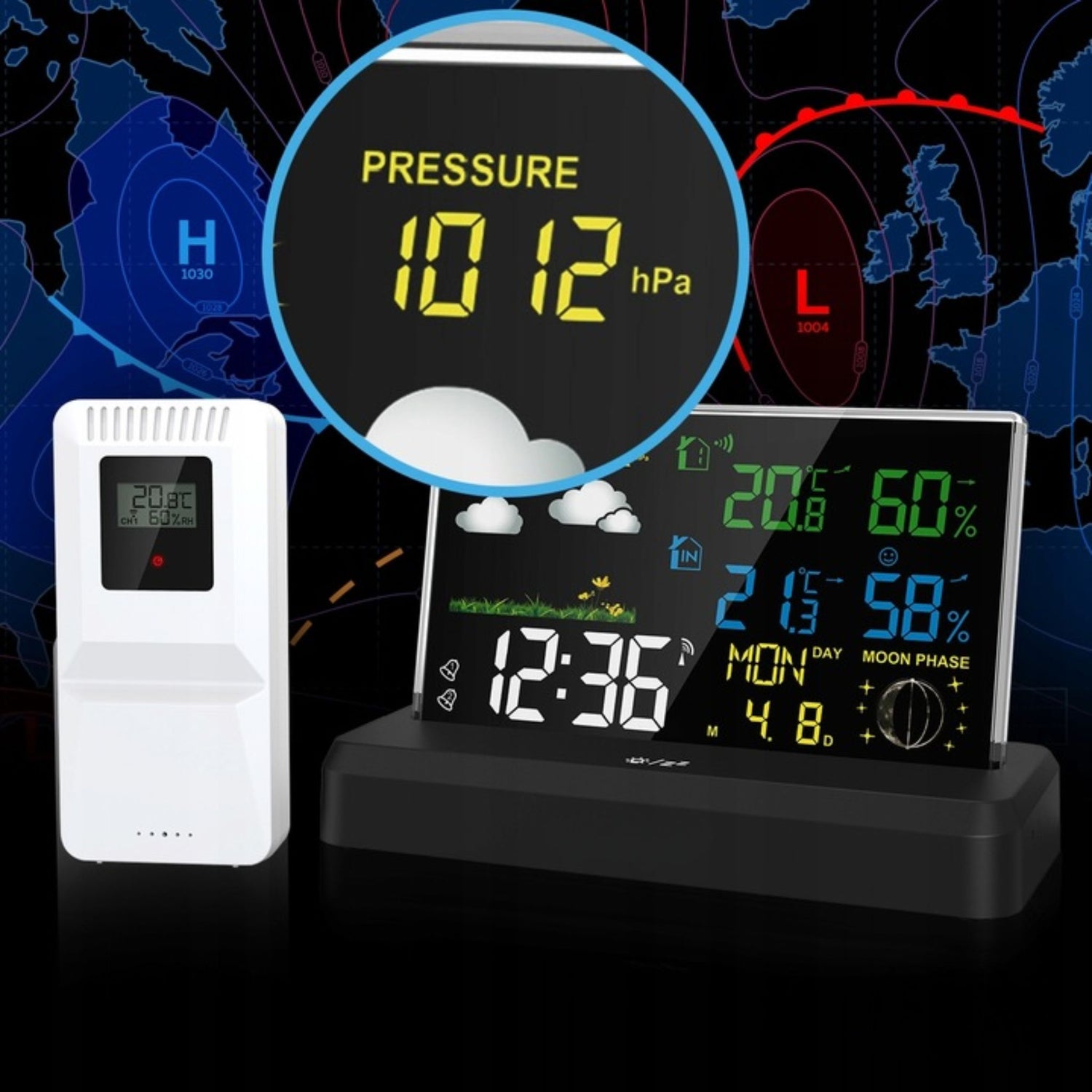 Stacja zapewnia precyzyjny pomiar najważniejszych parametrów pogodowych zarówno wewnątrz, jak i na zewnątrz Twojego domu. Oprócz temperatury i wilgotności, urządzenie rejestruje również ciśnienie atmosferyczne, dzięki czemu masz pełny obraz pogody.